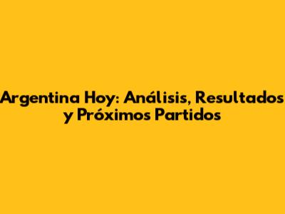 Argentina Hoy: Análisis, Resultados Y Próximos Partidos