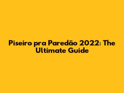 Piseiro Pra Paredão 2022: The Ultimate Guide