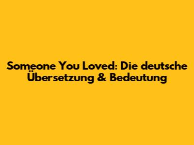 Someone You Loved: Die Deutsche Übersetzung & Bedeutung