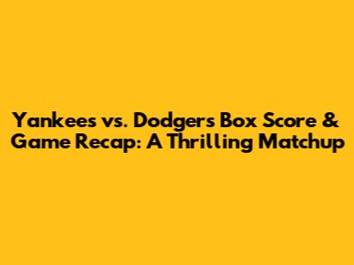 Hey baseball fanatics! Let's dive deep into the electrifying matchup between the New York Yankees and the Los Angeles Dodgers! We'll break down the box score, giving you all the crucial stats, and then we'll recap the game with some exciting highlights and analysis. Whether you're a die-hard fan or just catching up, this is your one-stop shop for everything you need to know about this epic clash. So, grab your peanuts and cracker jacks, and let's get started!